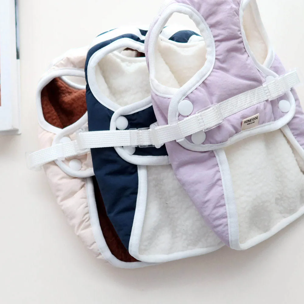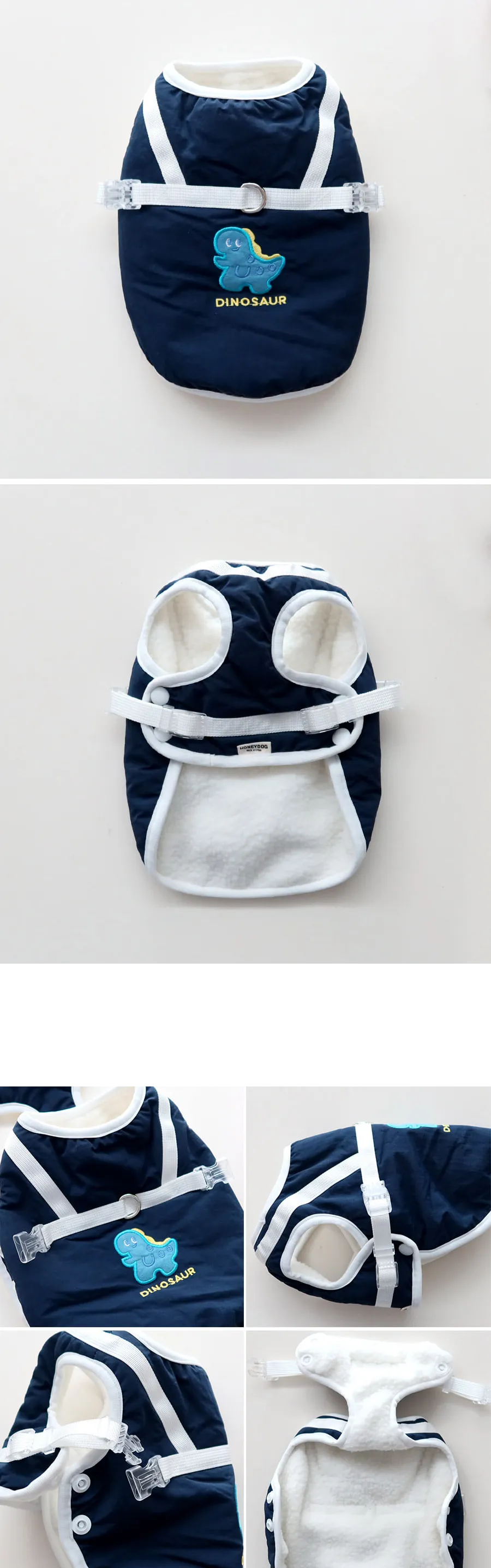 具有人體工學模式,輕鬆為您的毛孩穿上,只需將脖子套入,然後用按鈕和釦子安全固定側面。