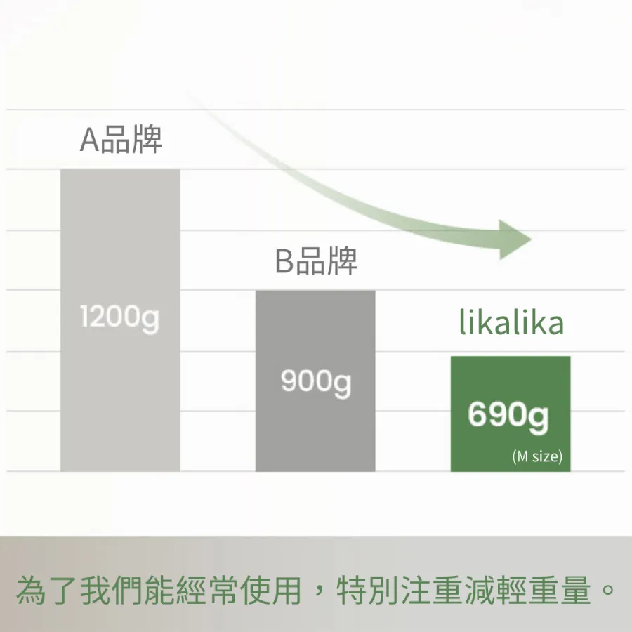 - 輕量化設計:為了讓主人輕鬆攜帶,包包特別注重減輕重量。