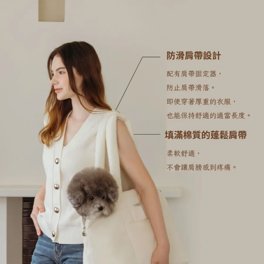 - 建議包包的橫向長度應比狗狗背長長5~10cm,以確保舒適度。