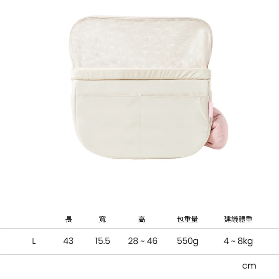 - 若搭配使用靠墊,建議包包的橫向長度應比狗狗背長長5~10cm,以確保舒適度。