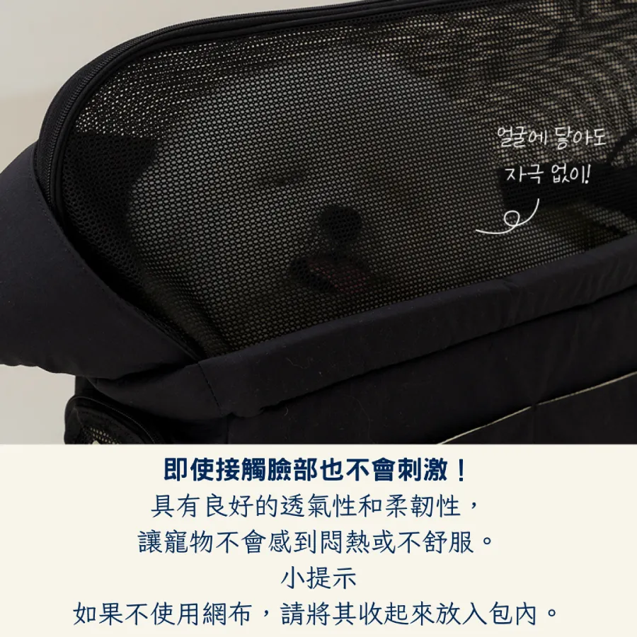 - 網布框架:輕盈柔軟的網布,具有良好的透氣性,保證狗狗在包內不會感到悶熱或不舒服。即使接觸到臉部也不會刺激皮膚。