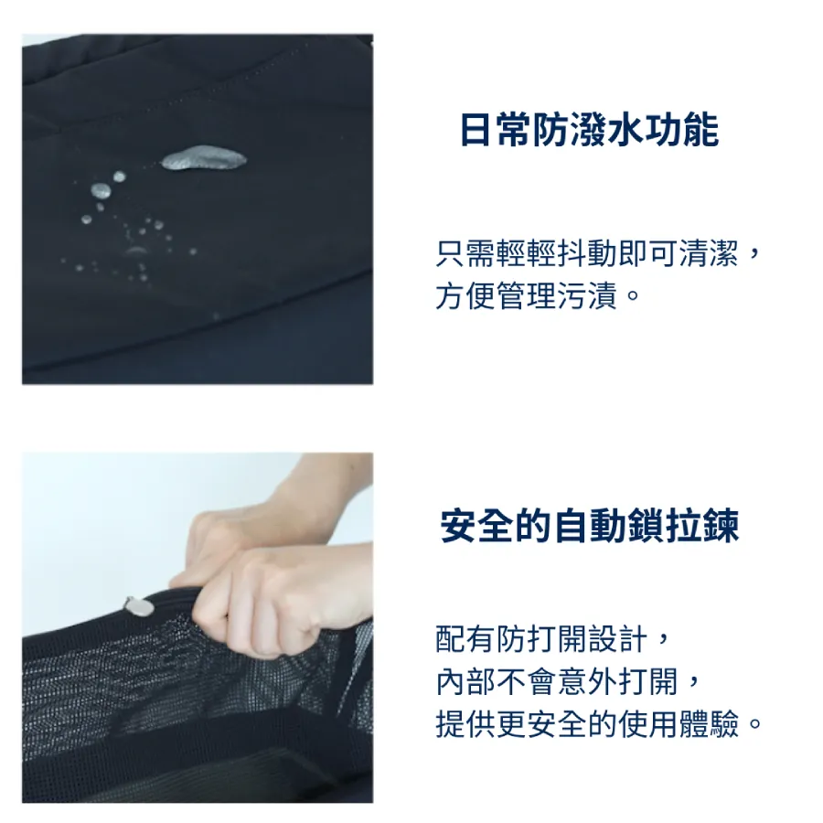 - 防打開設計:內部設有自動鎖拉鍊,防止包包意外打開,提供更安全的使用體驗。