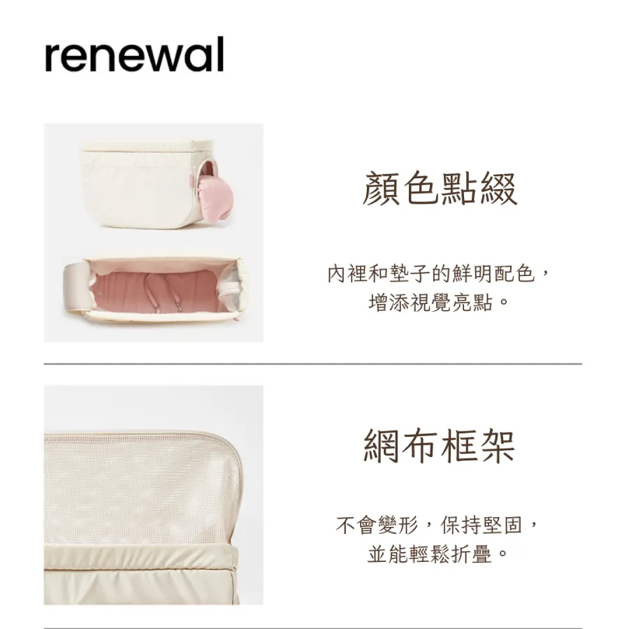 - 若不使用網布,請將其收起,並放入包內,保持包包的整潔與結構穩定。