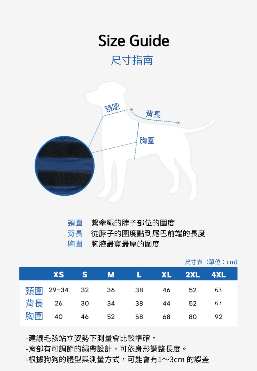 | 尺寸(cm) | 頸圍 | 背長 | 胸圍 |