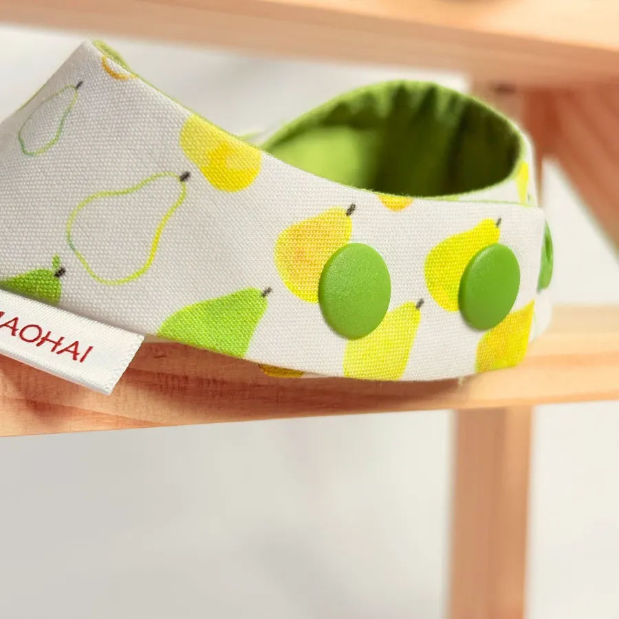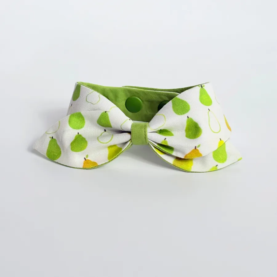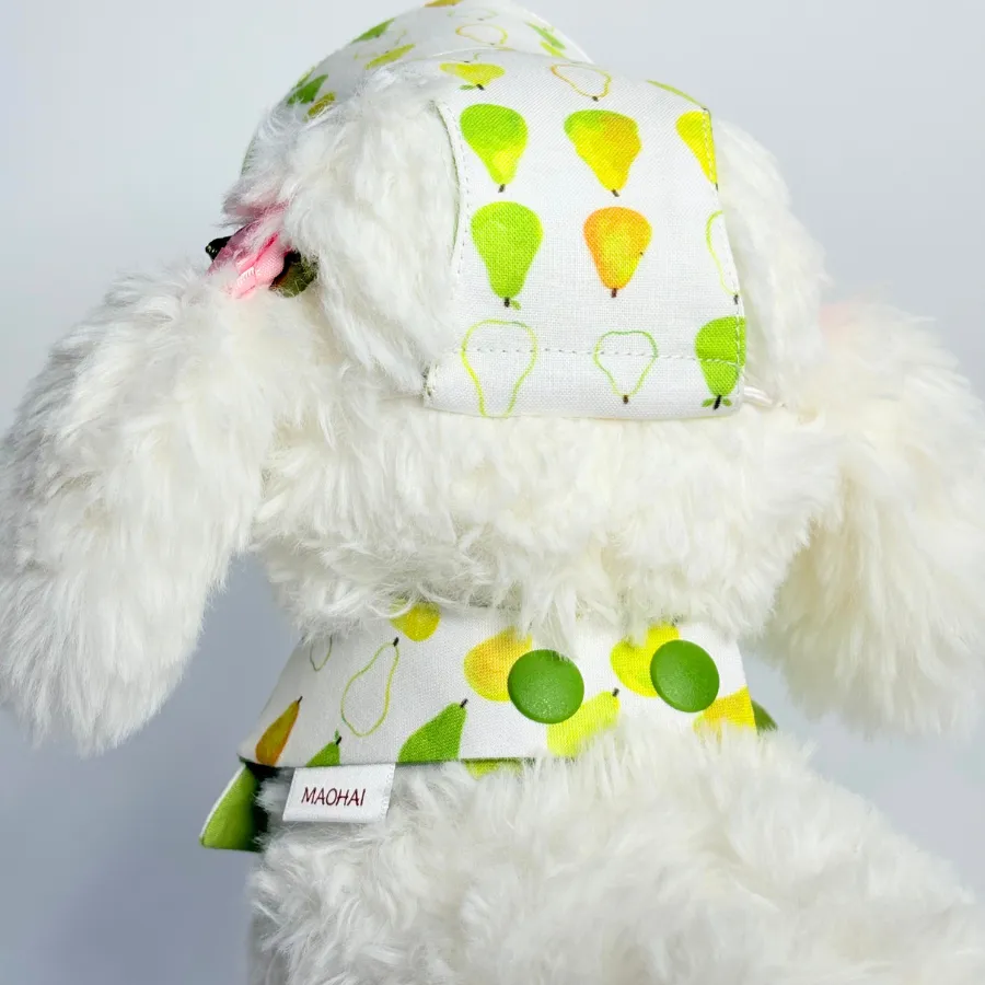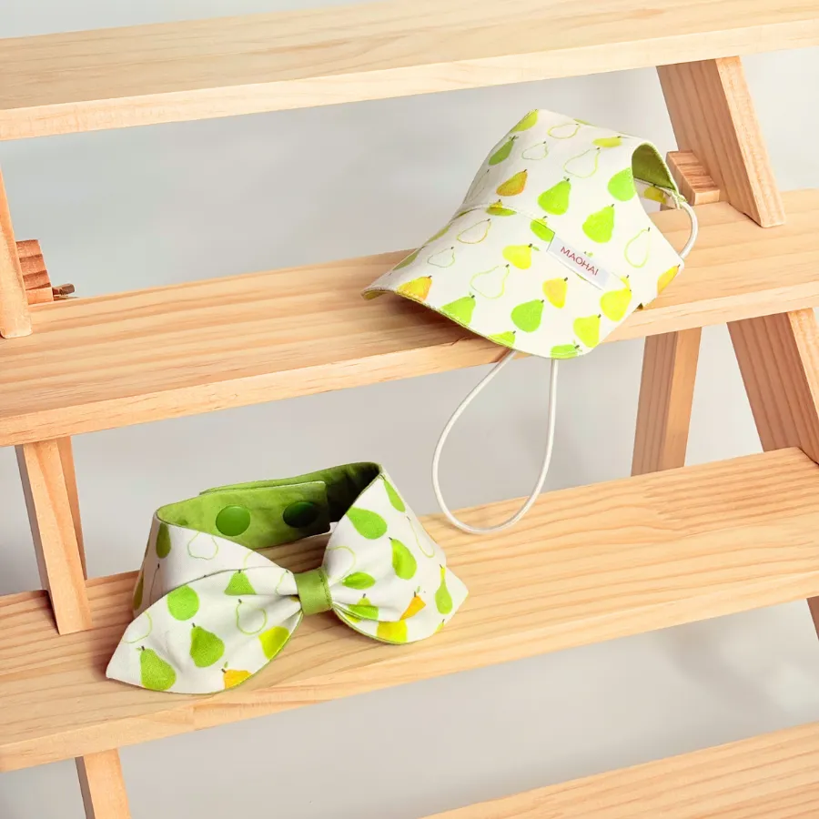 「青梨微光」是「果實小徑」系列的全新篇章,以白底配綠梨子圖案為基調,清新又不過分甜美,專為喜歡自然系風格的毛孩設計。🎀 蝴蝶領巾:清新梨香,優雅點綴