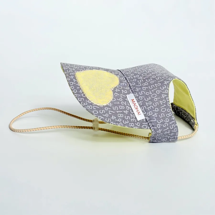 午後陽光輕灑在米黃色的布面上,淺灰色愛心拼布細緻點綴,