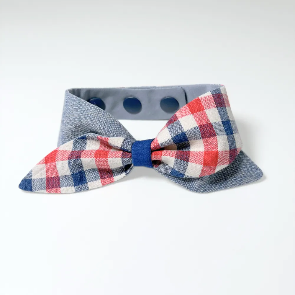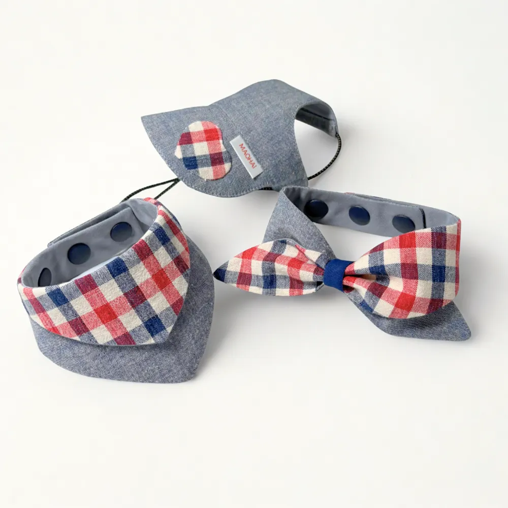 採用柔軟丹寧布搭配復古紅藍格紋,